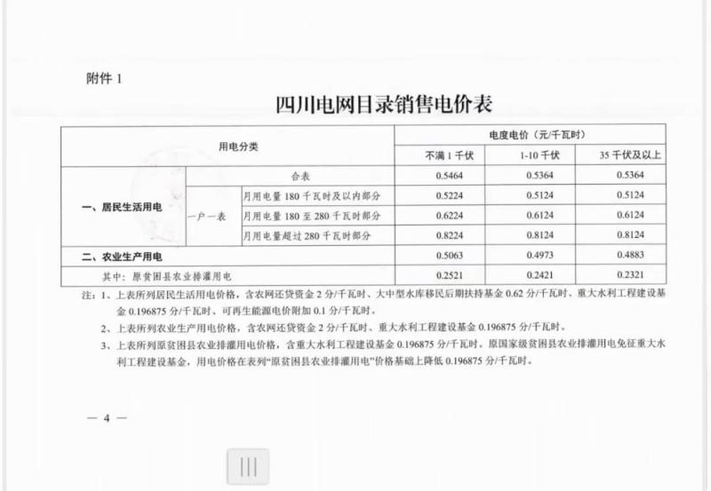 2、上表所列價(jià)格,居民生活用電含可再生能源電價(jià)附加0.1分錢(qián),含大中型水庫(kù)移民后期扶持基金0.62分錢(qián)。