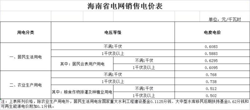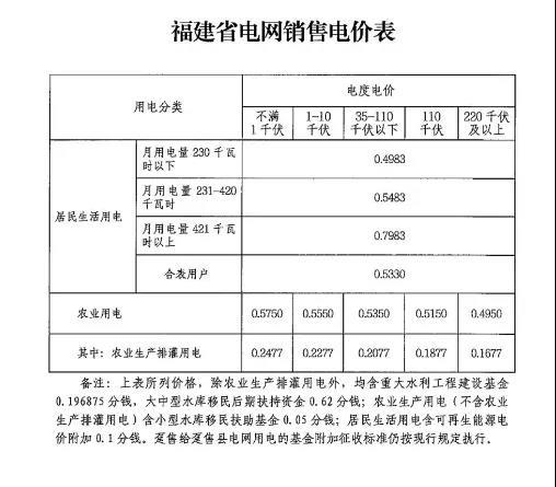 1.居民生活用電,含國(guó)家重大水利工程建設(shè)基金0.196875分錢(qián)、大中型水庫(kù)移民后期扶持資金0.62分錢(qián)、可再生能源電價(jià)附加0.1分錢(qián)。