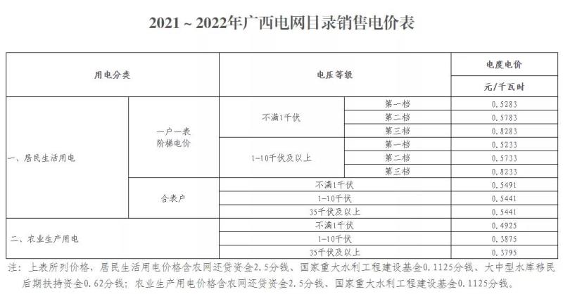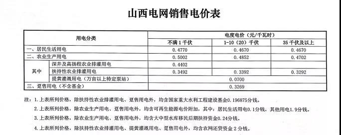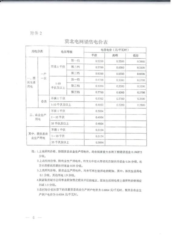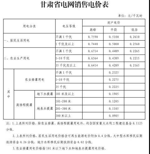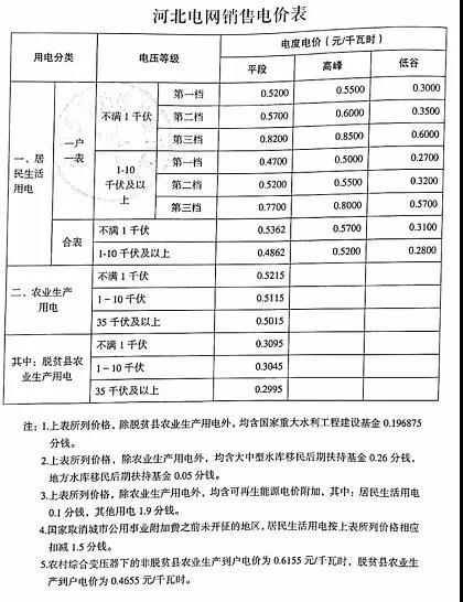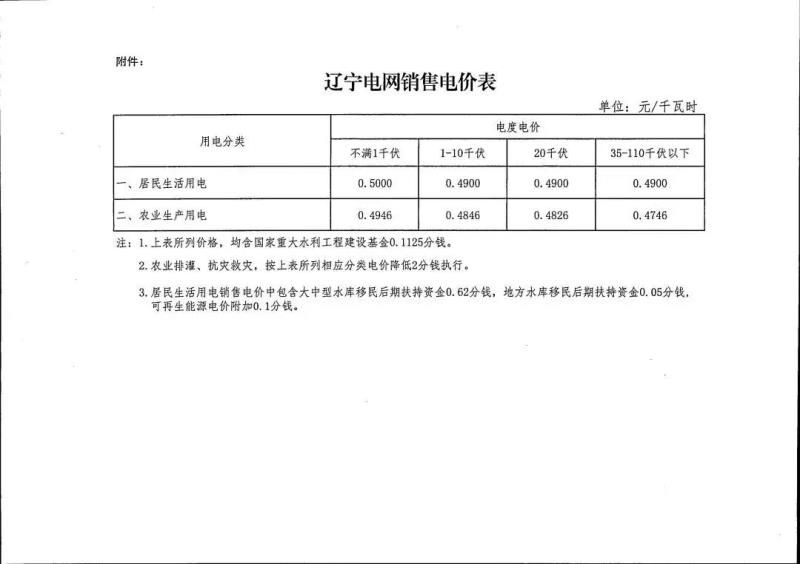 注:1、上表所列價(jià)格,除已摘帽貧困縣農(nóng)業(yè)排灌用電外,均含國(guó)家重大水利工程建設(shè)基金0.15525分錢(qián)。