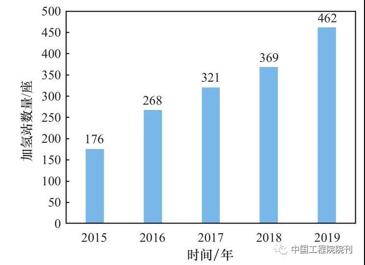 圖 2 2015—2019 年全球加氫站數(shù)量