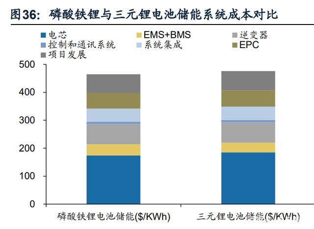 海外磷酸鐵鋰電池應(yīng)用于儲(chǔ)能領(lǐng)域的成本優(yōu)勢(shì)尚未凸顯。從海外儲(chǔ)能系統(tǒng)全產(chǎn) 業(yè)鏈成本構(gòu)成來看,儲(chǔ)能電池成本占比近 40%,而受制于海外磷酸鐵鋰發(fā)展較晚, 產(chǎn)業(yè)鏈配套相對(duì)滯后,磷酸鐵鋰電池成本優(yōu)勢(shì)尚未凸顯,根據(jù)美國(guó)能源部數(shù)據(jù),2020 年 10MW/40MWh 三元鋰電池儲(chǔ)能系統(tǒng)安裝成本平均 421 美元/KWh,而磷酸鐵鋰 電池儲(chǔ)能系統(tǒng)安裝成本平均 411 美元/KWh,差值較小。國(guó)內(nèi)則受益于新能源汽技 術(shù)進(jìn)步疊加規(guī)模效應(yīng),動(dòng)力電池價(jià)格在過去五年實(shí)現(xiàn)大幅下降,據(jù)鑫欏鋰電數(shù)據(jù), 2021 年二季度磷酸鐵鋰電池價(jià)格下探至 0.5-0.6 元/Wh,較 2016 年初的 2.6 元/Wh 降幅超 70%,相較于三元鋰電池價(jià)格低 20%以上,應(yīng)用于儲(chǔ)能領(lǐng)域優(yōu)勢(shì)凸顯。