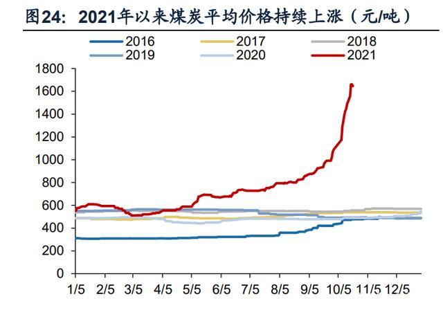 煤價(jià)高企下,“市場(chǎng)煤”與“計(jì)劃電”矛盾推動(dòng)煤電交易全面市場(chǎng)化,價(jià)格機(jī) 制。2021年以來,受煤炭供需偏緊和全球大宗商品價(jià)格上漲影響,華北地區(qū)動(dòng)力煤 價(jià)格由年初550元/噸上漲至十月中旬的1661元/噸,漲幅超200%,而煤電價(jià)格受“基 準(zhǔn)價(jià)+上下浮動(dòng)”限制,火電盈利空間持續(xù)壓縮,煤價(jià)高企下火電廠商出現(xiàn)虧損,發(fā)電意愿持續(xù)受限,火電矛盾愈發(fā)突出。