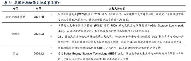 將儲(chǔ)能納入變革性能源技術(shù)予以支持。2021 年 3 月,美國(guó)能源部下屬西北太 平洋國(guó)家實(shí)驗(yàn)室 (PNNL)宣布投資 7500 萬美元用于電網(wǎng)側(cè)儲(chǔ)能研發(fā),加快低成本 長(zhǎng)時(shí)電網(wǎng)級(jí)儲(chǔ)能項(xiàng)目的開發(fā)和部署,提高電網(wǎng)的可靠性和靈活性以支持新能源汽車 增長(zhǎng)帶來的終端電氣化趨勢(shì)。同年 1 月,美國(guó)能源部撥款 4700 萬美元支持含儲(chǔ)能 在內(nèi)的變革性能源技術(shù),將支持整個(gè)能源領(lǐng)域的高風(fēng)險(xiǎn)和具有潛在顛覆性的新技術(shù), 加速能源創(chuàng)新技術(shù)由實(shí)驗(yàn)室向商業(yè)化轉(zhuǎn)變,包括新能源汽車動(dòng)力電池、數(shù)據(jù)中心儲(chǔ) 能、電網(wǎng)現(xiàn)代化改造、降低碳排放量等關(guān)鍵技術(shù)的進(jìn)一步發(fā)展。