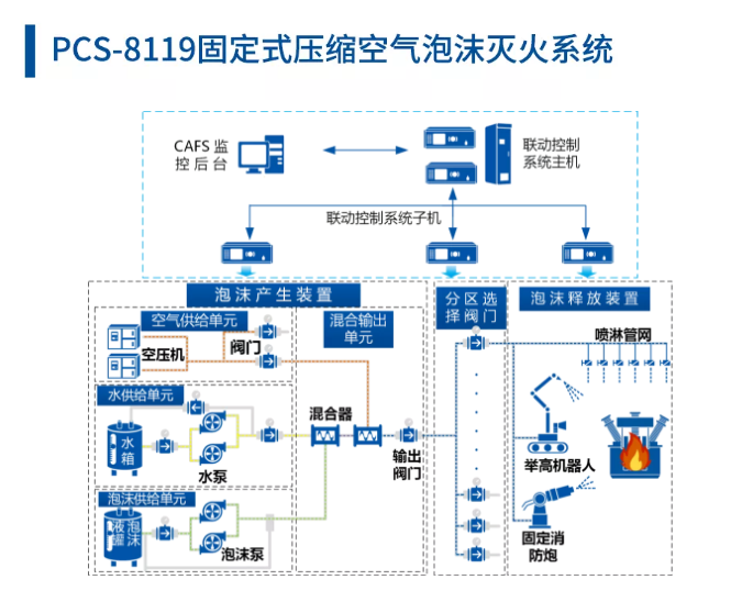 為解決大型儲油類設(shè)備火災(zāi)撲救難度大的問題,南瑞繼保研制了PCS-8119固定式壓縮空氣泡沫滅火系統(tǒng)。該系統(tǒng)用于對特高壓換流變壓器等大型儲油類設(shè)備的火災(zāi)撲救,具有滅火高效、抗爆性好、運行可靠的特點,同時系統(tǒng)配置了專用的消防聯(lián)動控制裝置,系統(tǒng)運維便捷、自動化程度高。該系統(tǒng)的應(yīng)用能有效提高特高壓換流變等大型儲油類設(shè)備的運行安全水平。