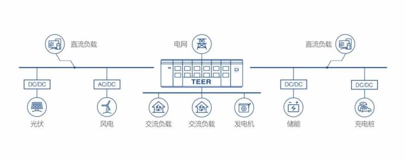 在用戶側(cè)項目中負荷類型多供配電系統(tǒng)結(jié)構復雜,如果按照常規(guī)的技術方案,光儲系統(tǒng)與原有配電系統(tǒng)結(jié)合時系統(tǒng)的結(jié)構將進一步復雜化,系統(tǒng)維護難度大,可靠性低。特變電工新能源研制的“居于國際領先水平”的電能路由器設備TEER,支持交直流一體化混合電力系統(tǒng)接入,專業(yè)匹配用戶側(cè)同時擁有分布式光伏、分散式風電、儲能、交直流負荷的綜合應用場景,大幅度降低系統(tǒng)復雜性。TEER具有高效率、高可靠性、高集成度、智能路由與集群功能的”三高一智“的特點,并且可以耐受多路配網(wǎng)的無阻礙式接入和中壓配電網(wǎng)的“手拉手”式軟連接,做到”剛?cè)岵坝行Ы鉀Q配網(wǎng)合環(huán)問題。目前,產(chǎn)品已在廣東珠?!爸С帜茉聪M革命的城市-園區(qū)雙級‘互聯(lián)網(wǎng)+’智慧能源示范項目”、東莞國家重點研發(fā)計劃“交直流混合的分布式可再生能源關鍵技術、核心裝備和工程示范研究”項目中穩(wěn)定運行,與傳統(tǒng)供電方式相比較整體供電效率可提升5%。