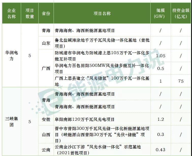 六小豪門(mén)的代表的華潤(rùn)電力、三峽集團(tuán)各涉及5個(gè)項(xiàng)目。