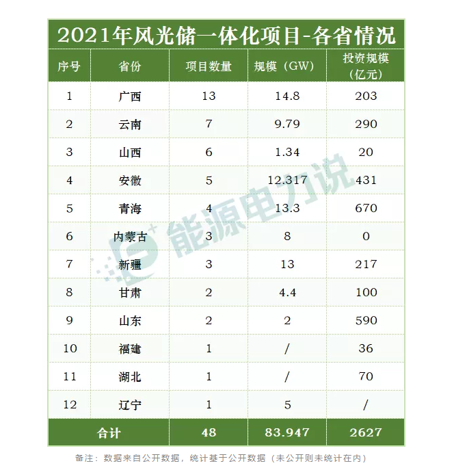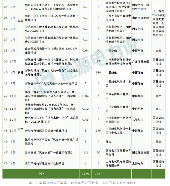 48個(gè)風(fēng)光儲(chǔ)一體化項(xiàng)目,總規(guī)模超過(guò)80GW,投資金額超2600億元。