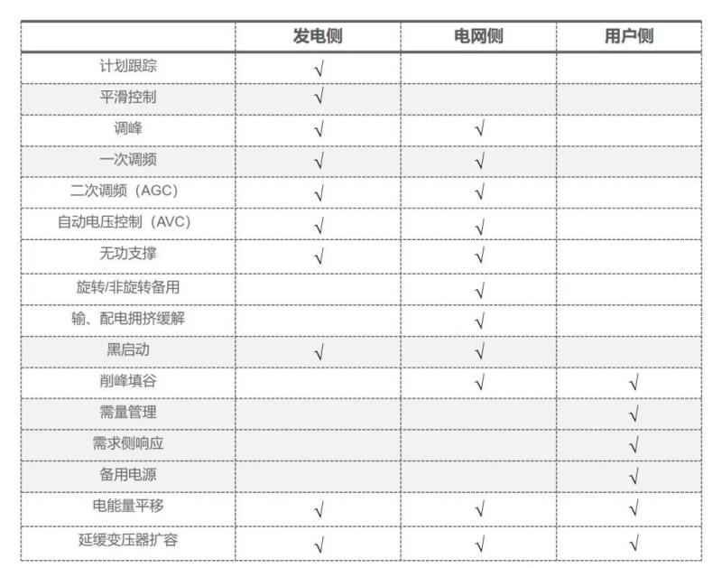 中國儲能網(wǎng)訊:圍繞電力系統(tǒng)的“發(fā)、輸、變、配、用”五大環(huán)節(jié),儲能的應(yīng)用場景主要分為發(fā)電側(cè)、電網(wǎng)側(cè)、用戶側(cè)。在發(fā)電側(cè),主要是聯(lián)合傳統(tǒng)火電機組參與AGC輔助服務(wù)、與新能源風光配套平抑波動提高風光利用率;在電網(wǎng)側(cè),主要是與特高壓送受端配套緊急功率支撐、變電站儲能調(diào)峰調(diào)頻、配電臺區(qū)儲能緩解重過載;在用戶側(cè),主要是工商業(yè)用戶削峰填谷、光儲充微電網(wǎng)。
