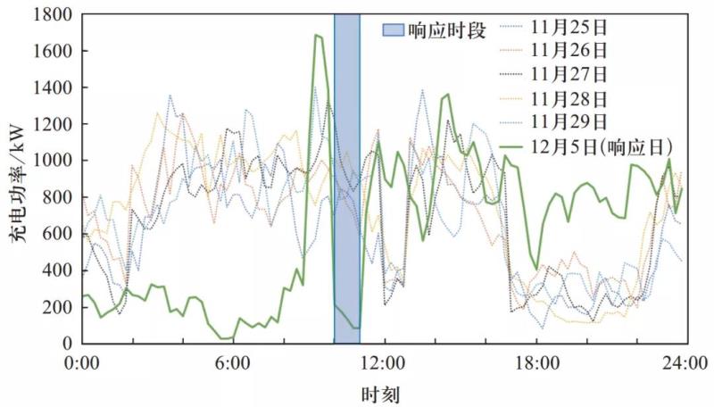 ? 圖1 專用充電樁削峰響應(yīng)與平日充電負(fù)荷對(duì)比