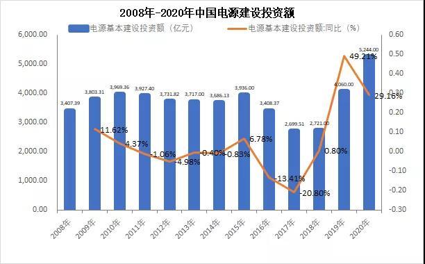 與之形成鮮明對比的是,我國電源投資“十三五”期間總體保持持續(xù)增長態(tài)勢,尤其是2020年電網(wǎng)投資達到創(chuàng)紀錄的5244億元。