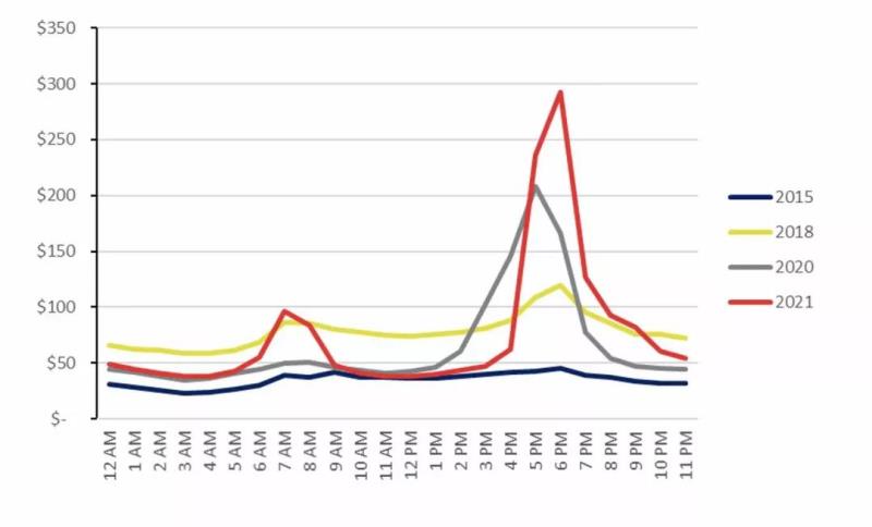隨著越來(lái)越多的太陽(yáng)能并入系統(tǒng),我們很可能會(huì)看到中午的價(jià)格甚至更低,而在晚上卻會(huì)出現(xiàn)飆升。與此同時(shí),同一時(shí)期的高需求也推動(dòng)了對(duì)昂貴網(wǎng)絡(luò)容量的需求。