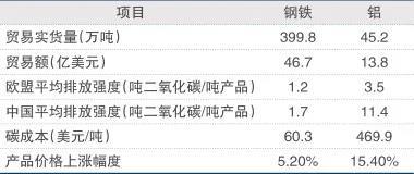 表1 碳邊境調(diào)節(jié)機(jī)制對(duì)中國(guó)出口歐盟主要產(chǎn)品價(jià)格影響