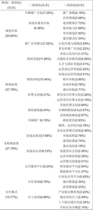 表4 城市燃料電池汽車(chē)政策評(píng)價(jià)指標(biāo)體系