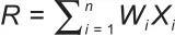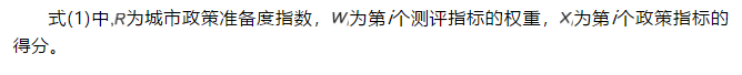 對(duì)城市政策水平調(diào)查研究的一個(gè)重要目標(biāo)就是測(cè)量和評(píng)價(jià)到現(xiàn)階段的政策準(zhǔn)備度(R)。本文評(píng)價(jià)部分采用李克特(Likert)5點(diǎn)量表尺度對(duì)政策指標(biāo)打分,采用算術(shù)加權(quán)平均法來(lái)進(jìn)行計(jì)算,如式(1)所示。