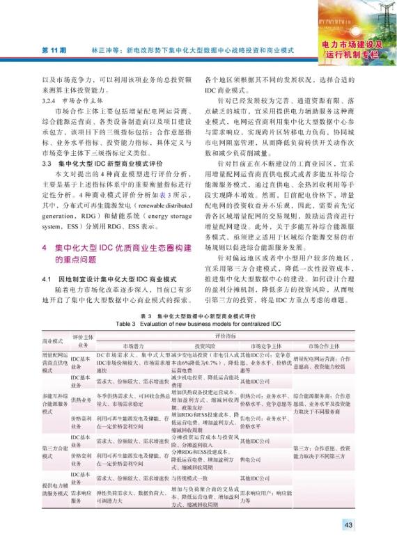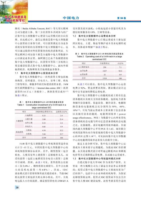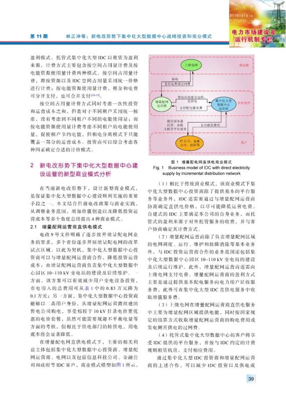 LIN Zhengchong, QI Sirui, GOU Jiwei, et al. Strategic investment and business models of large centralized data centers under the new power system reform[J]. Electric Power, 2021, 54(11): 37-46.