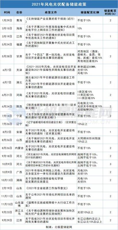 9月18日,河北省發(fā)改委正式下達《河北省2021年風電、光伏發(fā)電保障性并網(wǎng)項目計劃的通知》,明確2021年風電、光伏保障性并網(wǎng)項目85個,規(guī)模12.6108GW。其中,風電項目7個、1.2GW,光伏項目78個、11.4108GW。南網(wǎng)、北網(wǎng)保障性并網(wǎng)項目分別由開發(fā)企業(yè)按照不低于項目容量10%、15%配置儲能裝置,連續(xù)儲能時長不低于2小時。