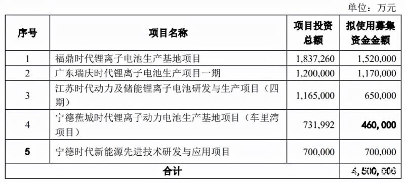 圖 / 寧德時代募資使用計劃