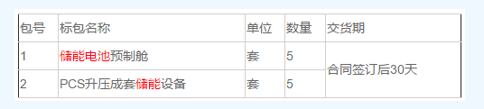 中國儲能網(wǎng)訊:平高集團有限公司2019年-2020年儲能項目第一批-成套設(shè)備類(天津項目)進行招標(biāo),擬采購儲能電池預(yù)制艙5套和PCS升壓成套儲能設(shè)備5套。詳情如下: