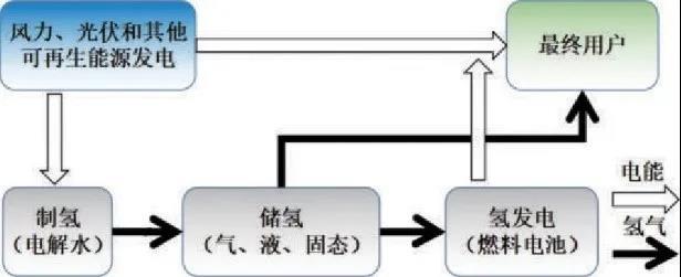 氫儲能是將電能轉(zhuǎn)化為高能量密度的燃料氣體的技術(shù)。通過將風(fēng)力發(fā)電、太陽能發(fā)電以及部分核能發(fā)電的剩余電力,也就是富余電力通過電解水制成氫,通過電或者氣再到電的轉(zhuǎn)換環(huán)節(jié),讓電力系統(tǒng)和氣體系統(tǒng)之間的能量雙向流動,成為一種可能性。