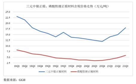 究其原因,來自上游原材料漲價(jià)。根據(jù) GGII 數(shù)據(jù),三元中鎳正極材料、磷酸鐵鋰正極材料、電解液、負(fù)極材料市場(chǎng)平均價(jià)格 2021 年 9 月較 2021 年 1 月分別上漲約 70%、105%、105%、40%。