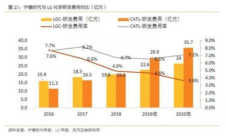 LG化學(xué)的研發(fā)費(fèi)用,2016、2017年還高于寧德時(shí)代,但到了2019年已經(jīng)被寧德時(shí)代反超。LG化學(xué)研發(fā)費(fèi)用率占比直線下滑。