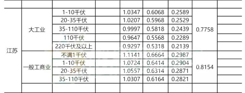 圖/江蘇省電價(jià)價(jià)差表