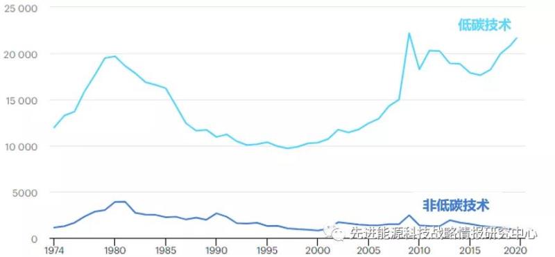 圖6 1974-2020年IEA成員國(guó)低碳技術(shù)和非低碳技術(shù)RD&D投入額(單位:以2020年購(gòu)買力平價(jià)計(jì)算的百萬美元)