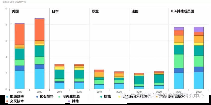 圖5 2019年和2020年IEA主要成員國(guó)和歐盟能源技術(shù)RD&D公共投入情況(按領(lǐng)域,單位:以2020年購(gòu)買力平價(jià)計(jì)算的十億美元)