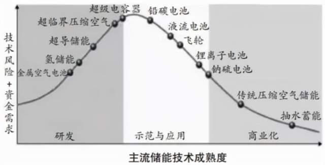 主流儲(chǔ)能技術(shù)成熟度如下圖所示。鋰離子電池憑借自身能量密度大、功率性能高、響應(yīng)速度快等優(yōu)勢(shì),目前已成為應(yīng)用最廣泛的一種儲(chǔ)能電池技術(shù);