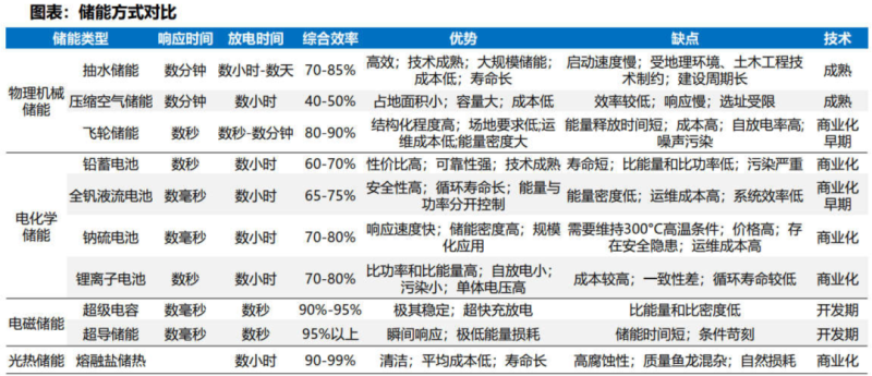 抽水蓄能和傳統(tǒng)壓縮空氣儲(chǔ)能技術(shù)相對(duì)成熟,適合百兆瓦及以上規(guī)模的儲(chǔ)能應(yīng)用,并已實(shí)現(xiàn)商業(yè)化應(yīng)用;超導(dǎo)儲(chǔ)能技術(shù)在電力系統(tǒng)中的應(yīng)用還不成熟,距離規(guī)?;瘧?yīng)用仍需要一定的時(shí)間。