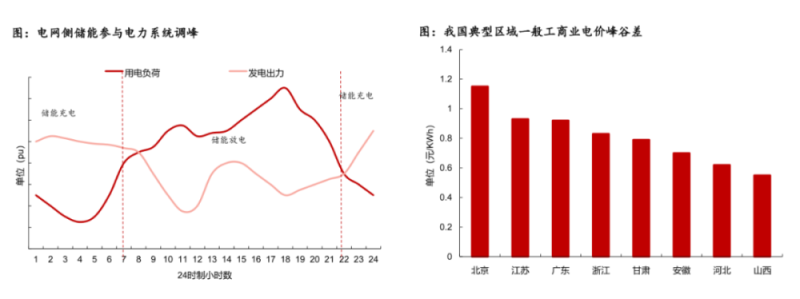 我國工商業(yè)用電已實(shí)施峰谷電價(jià)制,比如北京的工商業(yè)電價(jià)差可達(dá)1.15元/kWh。電儲(chǔ)能既能削峰填谷調(diào)控電網(wǎng)用電負(fù)荷,還能利用峰谷差價(jià)獲取收益,同時(shí)提高了電網(wǎng)整體效率。