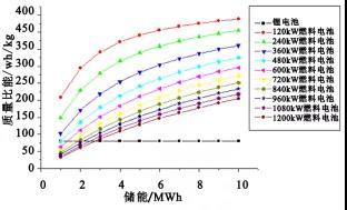 圖4 鋰電池和燃料電池質(zhì)量能量密度對(duì)比[2]