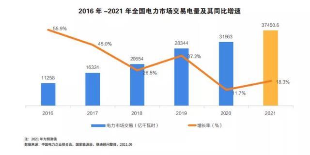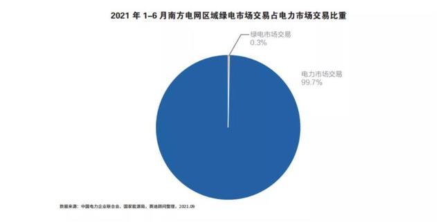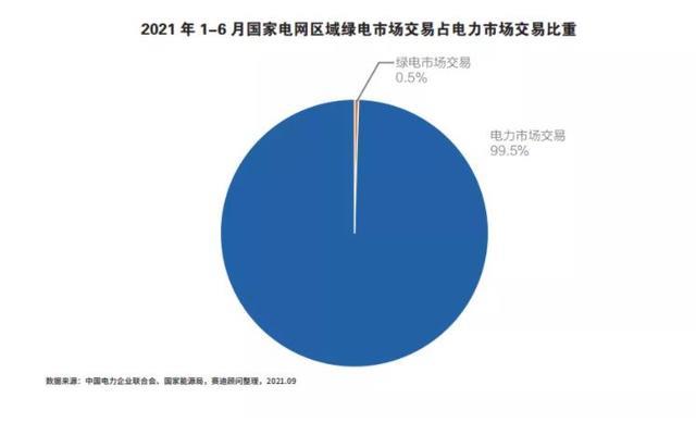 隨著電力消費需求穩(wěn)定上漲,電力交易市場發(fā)展迅速,呈現(xiàn)逐年上升趨勢,截至2021年6月,全國各電力交易中心完成市場交易電量17023億千瓦時,同比增長41.6%,而首次綠電交易規(guī)模僅為79.35億千瓦時,占比不足0.5%。