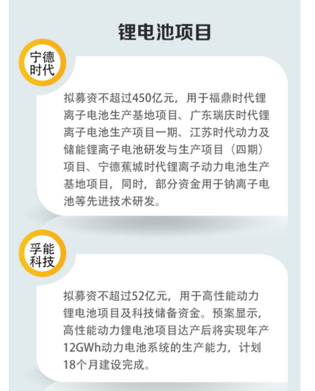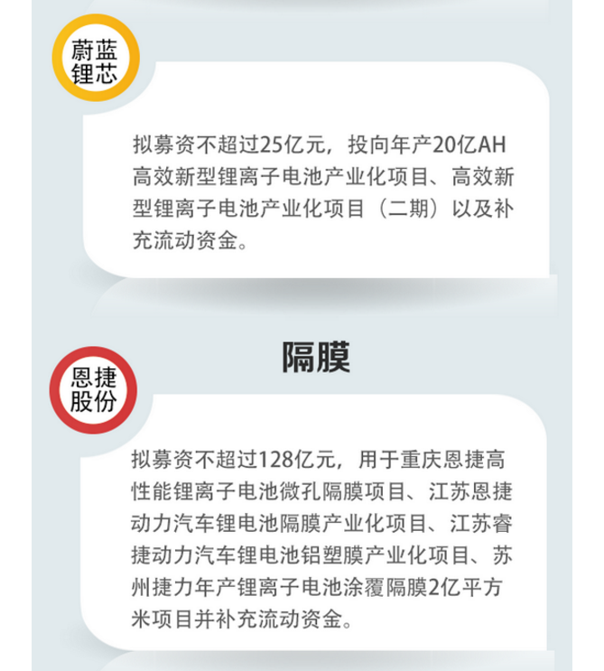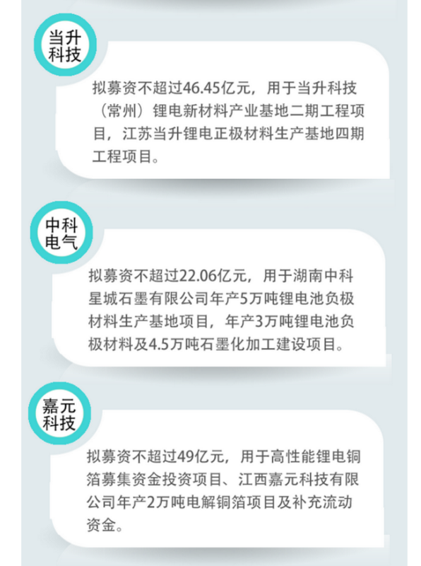 據(jù)中國證券報記者不完全統(tǒng)計,2021年以來,鋰電上市公司密集發(fā)布定增預(yù)案,計劃募資總額近1360億元,用于擴(kuò)大產(chǎn)能、新技術(shù)研發(fā)等,涉及鋰礦、鋰電正極、負(fù)極、電解液等多個環(huán)節(jié)。
