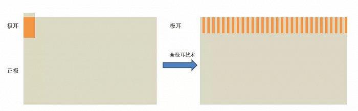 具體到電池充放電過程,電子是在橫穿整個電芯之后到達與電芯集流體焊接的極耳,再通過外部導(dǎo)線到達另一極。在電池工作中,電子的流動極易導(dǎo)致極耳焊接接處局部熱量過大,加之接觸點小,沒有足夠散熱空間,這一直是電池安全的瓶頸,當前的快充也受制于極耳。