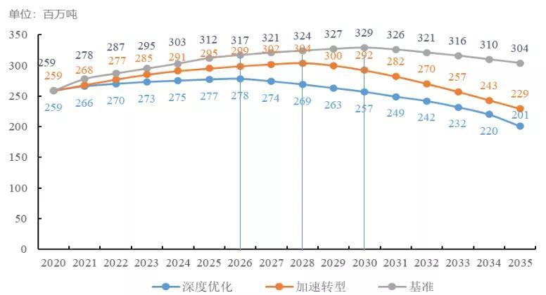 ◆加速情景:率先達峰,煤炭消費占一次能源消費比重、終端電氣化率按“十四五”規(guī)劃推進,并延伸至2035年;