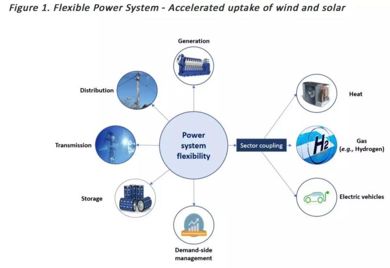 這么大比例的間歇性可再生能源要求電網(wǎng)具有更大的靈活性。根據(jù)IRENA的引用專家的觀點(diǎn),電網(wǎng)擁有更大的靈活性有五種途徑,按照成本(從低到高)排列如下: