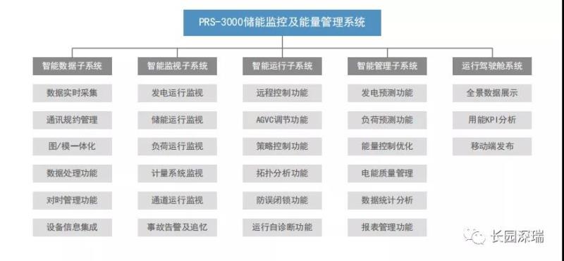 ▲ 長(zhǎng)園深瑞PRS-3000儲(chǔ)能監(jiān)控及能量管理系統(tǒng)功能