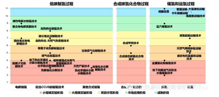 圖1 制氫、儲(chǔ)氫、運(yùn)氫過(guò)程技術(shù)成熟度