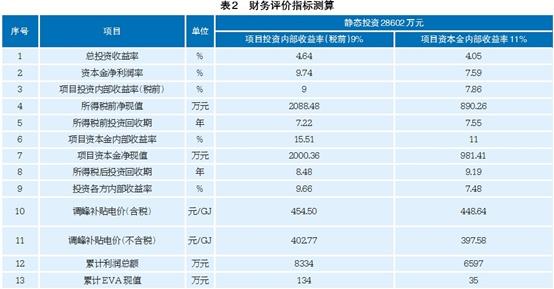 財務評價指標測算。在項目投資內部收益率(稅前)9%、項目資本金內部收益率11%的條件下分別反算調峰補貼電價,測算財務評價指標見表2。