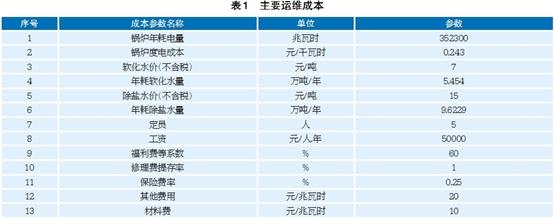 調峰電量及調峰補貼電價。項目運行時間按照某市采暖期233天,每天調峰7小時考慮。第一檔調峰電量3400兆瓦時,第二檔調峰電量34890兆瓦時(達到東北電網(wǎng)調峰深度要求的調峰電量);第一檔調峰電價補貼0.3元/千瓦時,第二檔調峰電價補貼0.8元/千瓦時,加權平均調峰電價補貼0.795元/千瓦時。主要運維成本見表1。