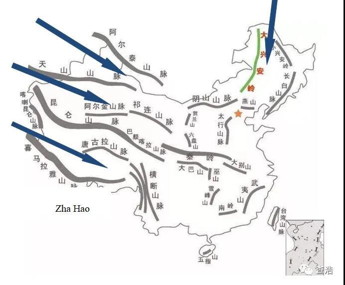 從上圖中,可以看出隨著空間范圍的擴(kuò)大,風(fēng)電的波動(dòng)性會(huì)減小,空間范圍越大、風(fēng)電的整體波動(dòng)性會(huì)越小,說(shuō)明風(fēng)能資源具有一定的空間互補(bǔ)性和平滑效果。其實(shí)理解這個(gè)特性,通過(guò)下面一張圖(中國(guó)山脈分布圖)也可以有個(gè)大體判斷。