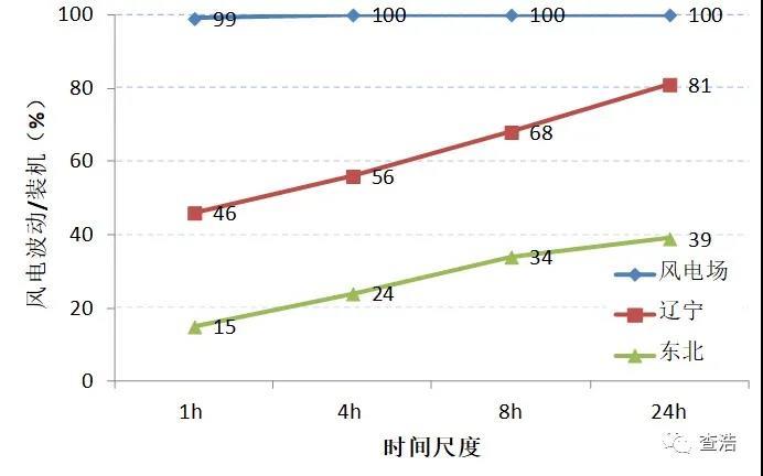 通過(guò)上圖可見(jiàn),單座風(fēng)電場(chǎng)在一天中的不同時(shí)間尺度,波動(dòng)會(huì)很大,1小時(shí)內(nèi)出力會(huì)從0到滿發(fā),但一省所有風(fēng)電出力波動(dòng)性會(huì)相應(yīng)減小,多省風(fēng)電出力疊加后的整體波動(dòng)會(huì)進(jìn)一步降低。