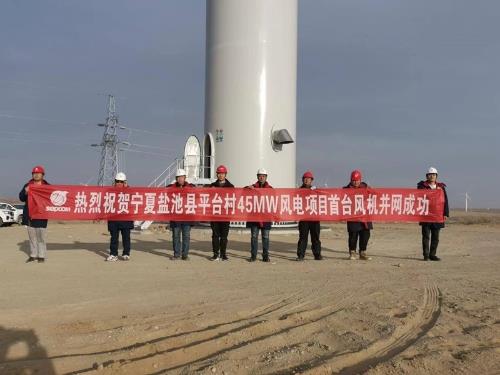 中國儲能網(wǎng)訊:12月8日12點08分,中國電建所屬山東電建三公司寧夏鹽池縣平臺村45MW分散式風(fēng)電項目首臺風(fēng)機并網(wǎng)前試驗順利完成,各項指標均滿足并網(wǎng)要求,并網(wǎng)發(fā)電一次成功。
