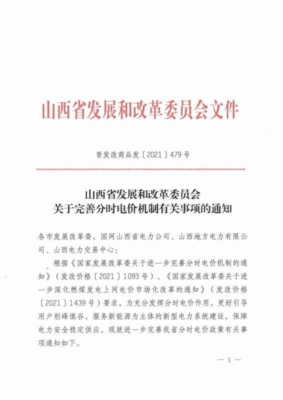 中國儲(chǔ)能網(wǎng)訊:12月14日,山西省發(fā)改委發(fā)布關(guān)于完善分時(shí)電價(jià)機(jī)制有關(guān)事項(xiàng)的通知,通知中提出鼓勵(lì)工商業(yè)用戶通過配置儲(chǔ)能、開展綜合能源利用等方式降低高峰時(shí)段用電負(fù)荷、增加低谷用電量,通過改變用電時(shí)序降低用電成本。