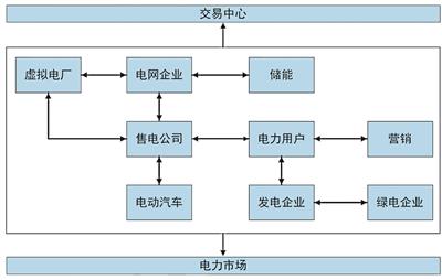 傳統(tǒng)的電力市場由發(fā)電企業(yè)、售電公司、電網(wǎng)企業(yè)和電力用戶組成,對應(yīng)電力工業(yè)發(fā)、輸、配、售四個環(huán)節(jié)。從我國“十四五”規(guī)劃和電力市場發(fā)展趨勢來看,可再生能源場站、虛擬電廠、儲能、電動汽車四個新興市場主體將加入電力市場。