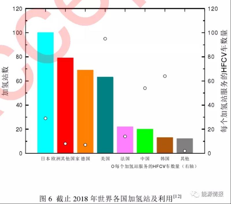 圖6是截止2018年世界各國(guó)加氫站的建設(shè)情況。日本、德國(guó)和美國(guó)加氫站的建設(shè)比較早,也比較多,中國(guó)起步較晚,相對(duì)較少。2019年以后,中國(guó)加氫站數(shù)量爆發(fā)式增長(zhǎng),按照前瞻產(chǎn)業(yè)研究院的統(tǒng)計(jì),2020年已達(dá)到88座。中石化計(jì)劃“十四五”期間建設(shè)1000座加氫站。不同國(guó)家的氫燃料加油站與輕型燃料電池電動(dòng)汽車的比率差異很大,反映了部署方法、加油站規(guī)模、儲(chǔ)存壓力和利用率的差異。我國(guó)每個(gè)加氫站的平均氫能源車數(shù)量相對(duì)較高,說明我國(guó)更側(cè)重氫能源車的開發(fā)。