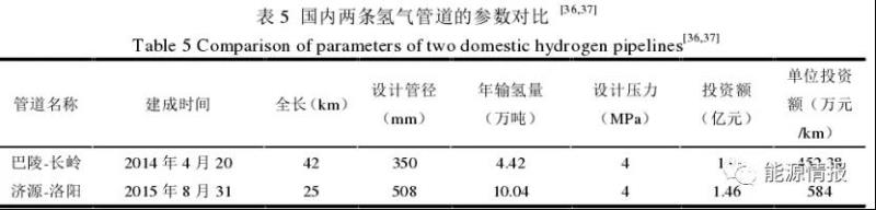 我國(guó)氫氣管網(wǎng)發(fā)展不足,輸氫管道主要分布在環(huán)渤海灣、長(zhǎng)三角等地,目前已知最長(zhǎng)的輸氫管道為―巴陵-長(zhǎng)嶺‖輸氫管道,全長(zhǎng)約42km、壓力為4MPa,其次是濟(jì)源-洛陽輸氫管道(25km),兩者的技術(shù)參數(shù)如表5所示。目前全國(guó)累計(jì)僅有100公里輸氫管道,氫氣管網(wǎng)布局有較大提升空間。隨著氫能產(chǎn)業(yè)的快速發(fā)展,日益增加的氫氣需求量將推動(dòng)我國(guó)氫氣管網(wǎng)建設(shè)。國(guó)內(nèi)氫氣管網(wǎng)建設(shè)正在提速,根據(jù)《中國(guó)氫能產(chǎn)業(yè)基礎(chǔ)設(shè)施發(fā)展藍(lán)皮書(2016)》所制定的氫能產(chǎn)業(yè)基礎(chǔ)設(shè)施發(fā)展路線,到2030年,我國(guó)燃料電池汽車將達(dá)200萬輛,同時(shí)將建成3000km以上的氫氣長(zhǎng)輸管道。該目標(biāo)將有效推進(jìn)我國(guó)氫氣管道建設(shè)。