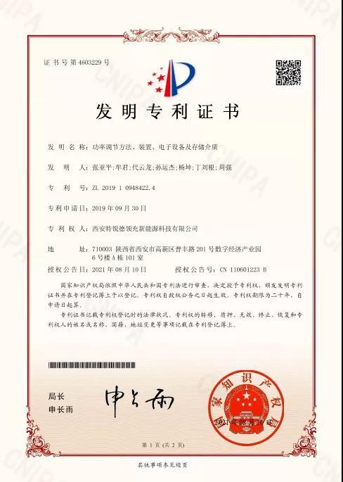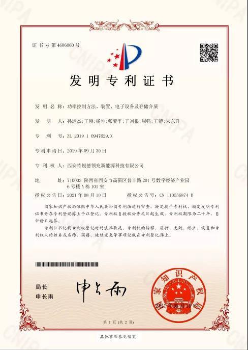 中國(guó)儲(chǔ)能網(wǎng)訊:近日,領(lǐng)充新能源申報(bào)的“功率調(diào)節(jié)方法、裝置、電子設(shè)備及儲(chǔ)存介質(zhì)”2項(xiàng)發(fā)明專(zhuān)利成功獲得國(guó)家知識(shí)產(chǎn)權(quán)局授權(quán),并取得發(fā)明專(zhuān)利證書(shū)。