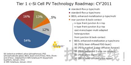 圖1 一線(xiàn)晶硅電池廠(chǎng)商2011年光伏技術(shù)路線(xiàn)圖(來(lái)源:NPD Solarbuzz)